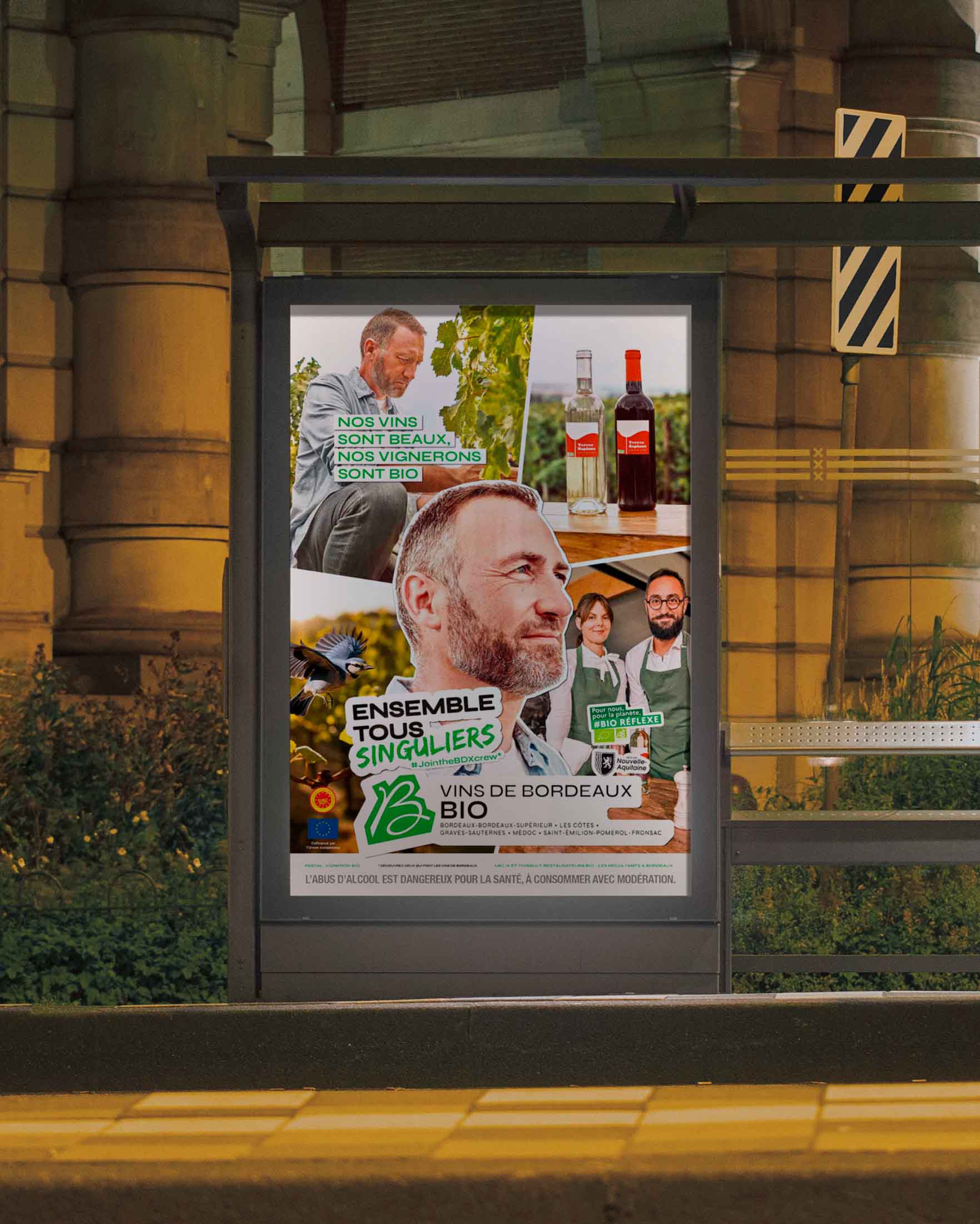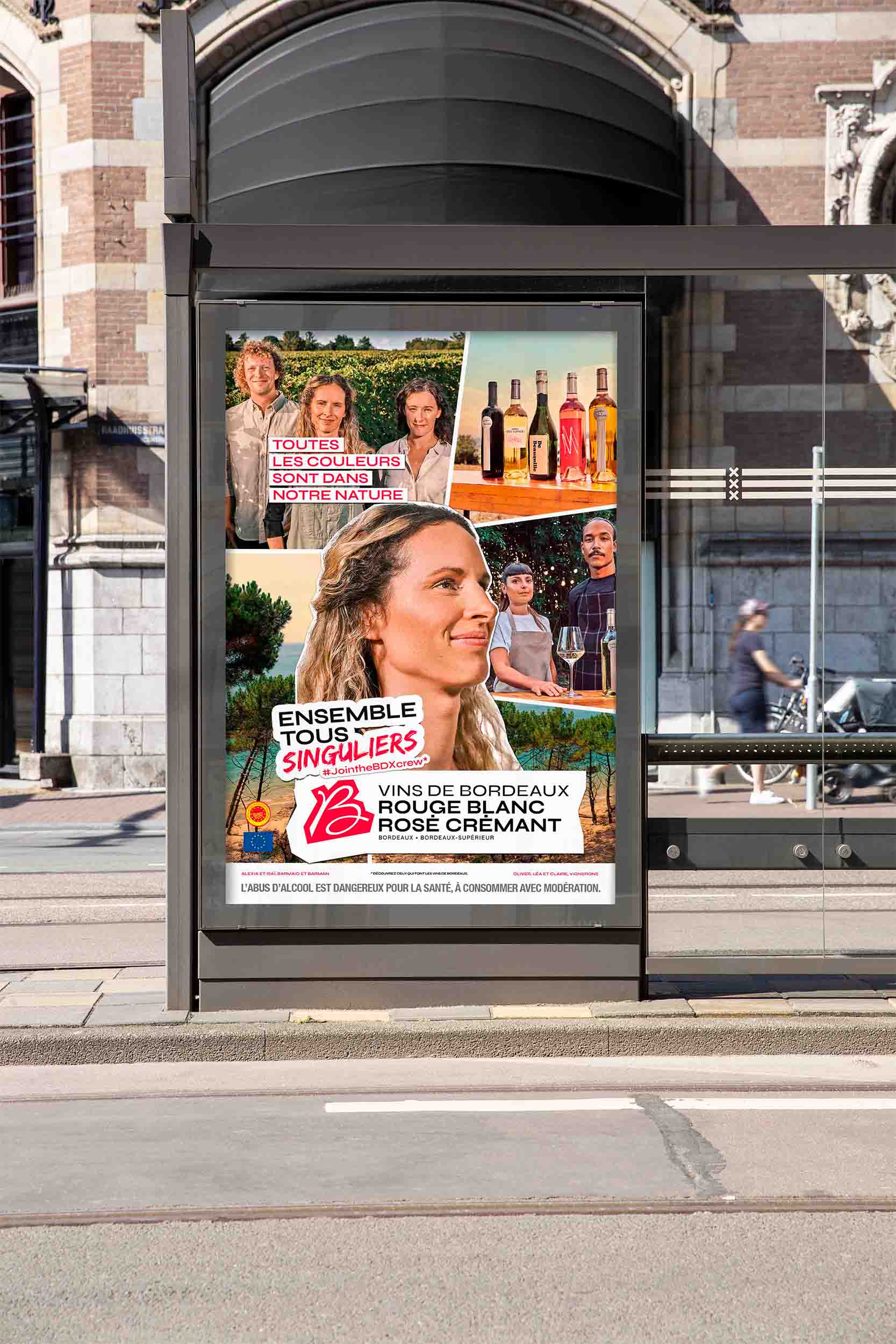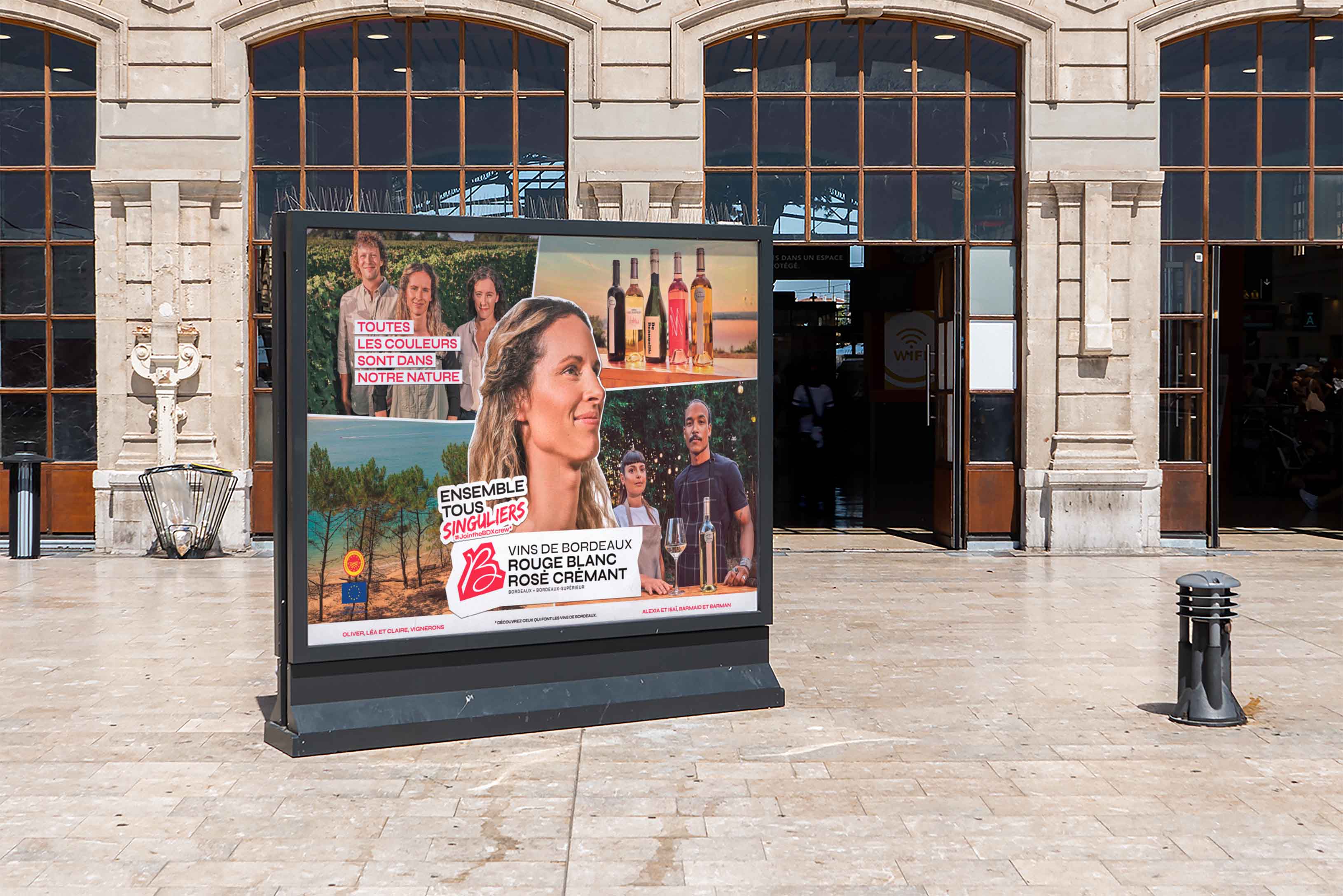 Déploiement sur affichage (OOH, DOOH, métro parisien, Wine Paris) et adaptation des supports print de la campagne.